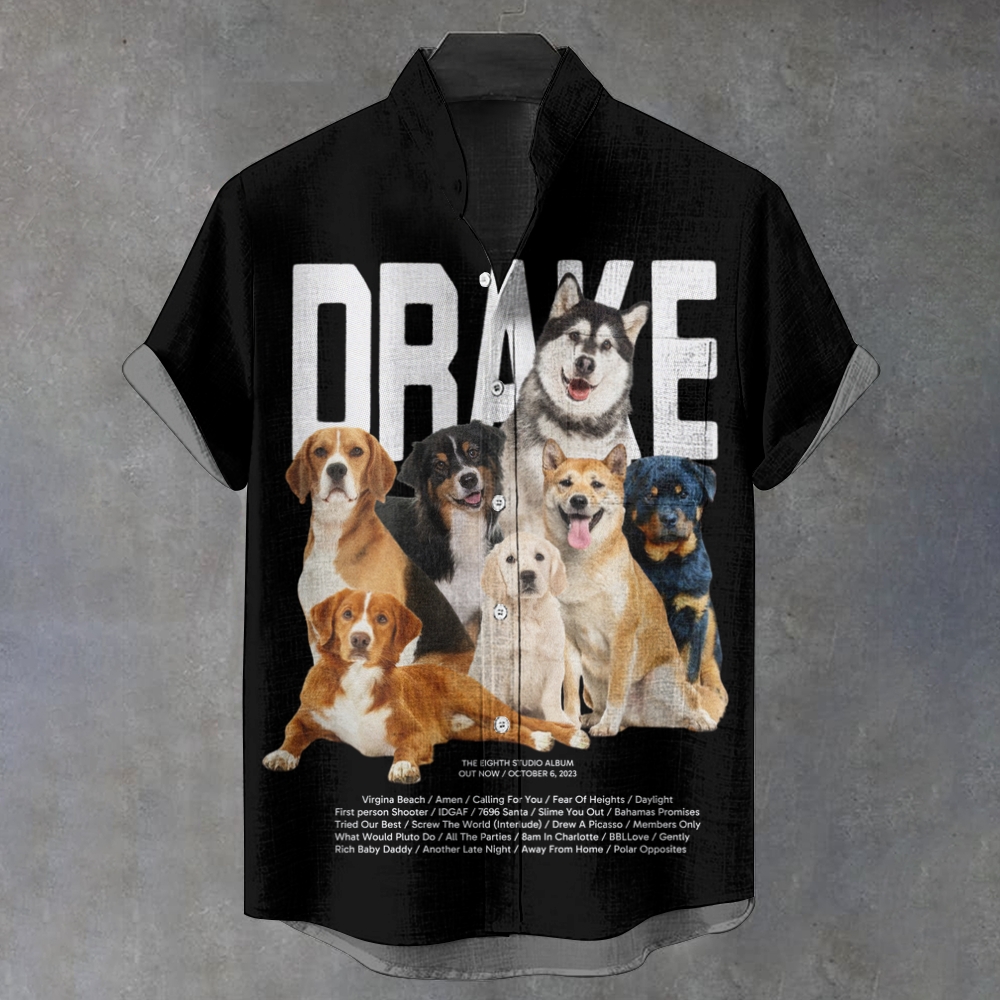 Men's Stand Collar For All the Dogs Printed Short Sleeve Shirt