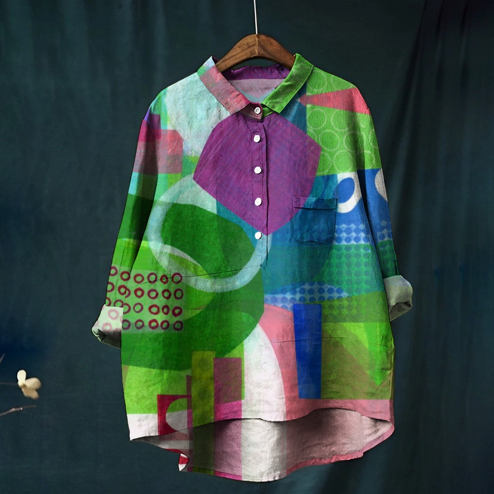 Women's Irregular Geometric Splicing Printed Casual Shirt