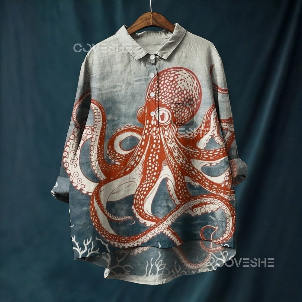 Women's Octopus Printed Casual Long Sleeve Shirt