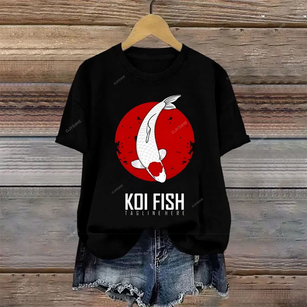 Crew Neck Koi Fish Printed Casual Cotton T-shirt