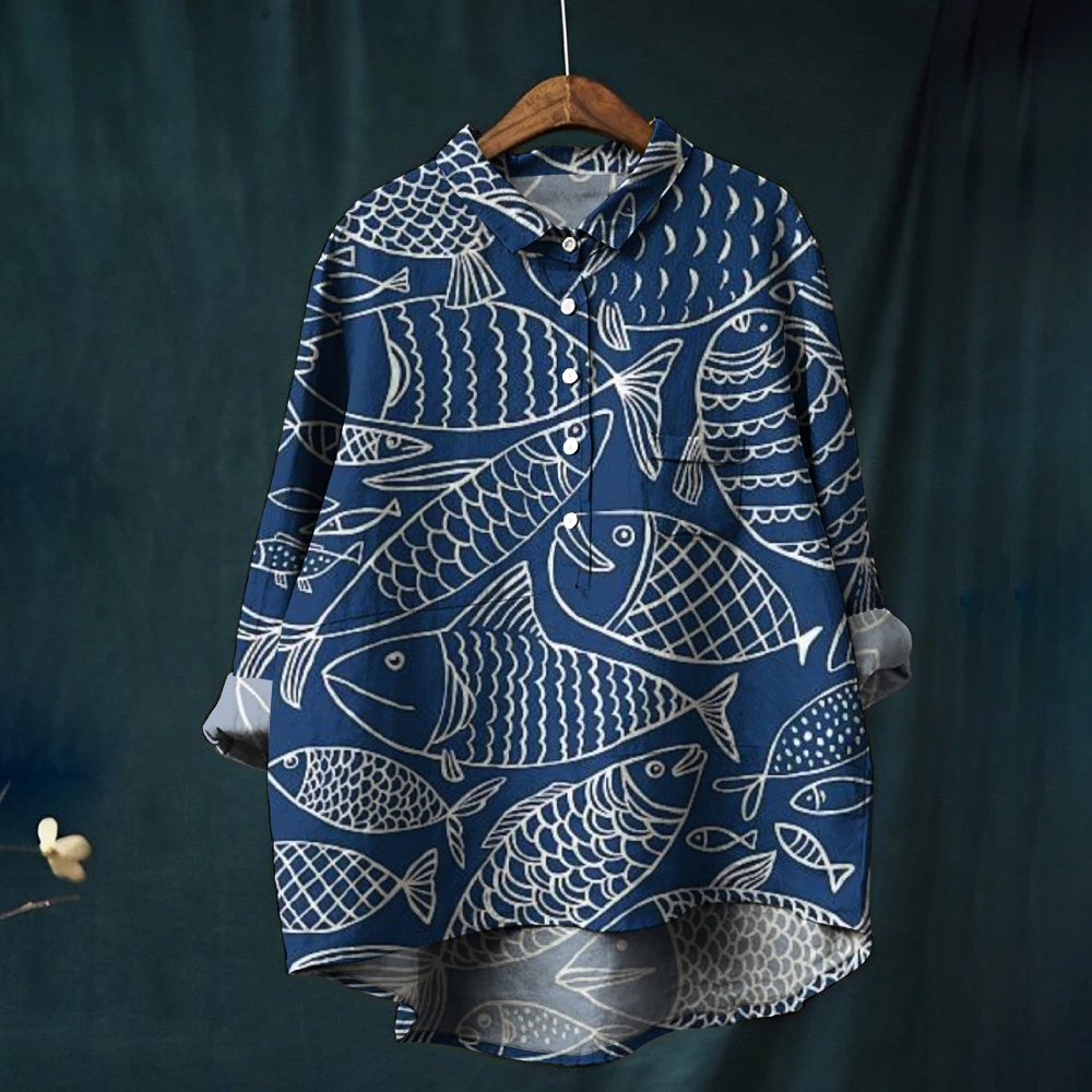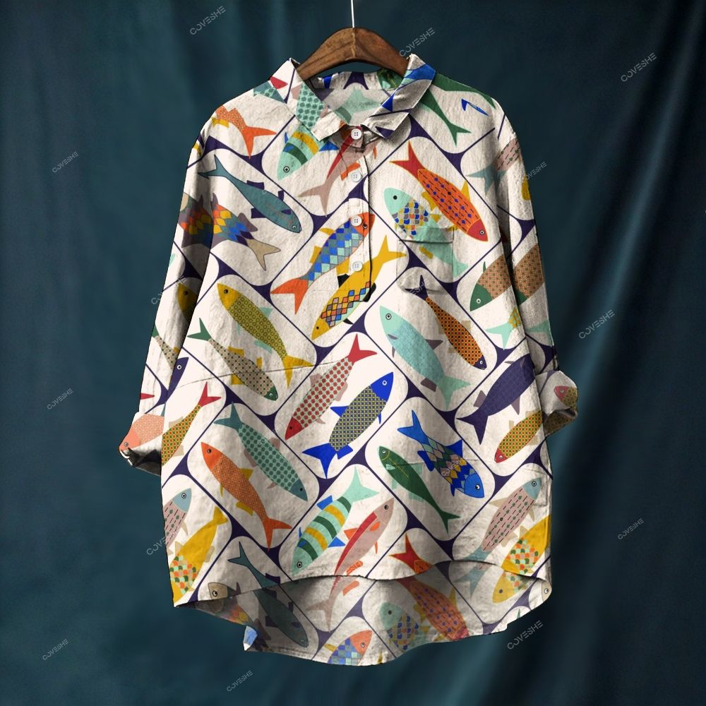 Women's Colorful Fish Printed Casual Long Sleeve Shirt