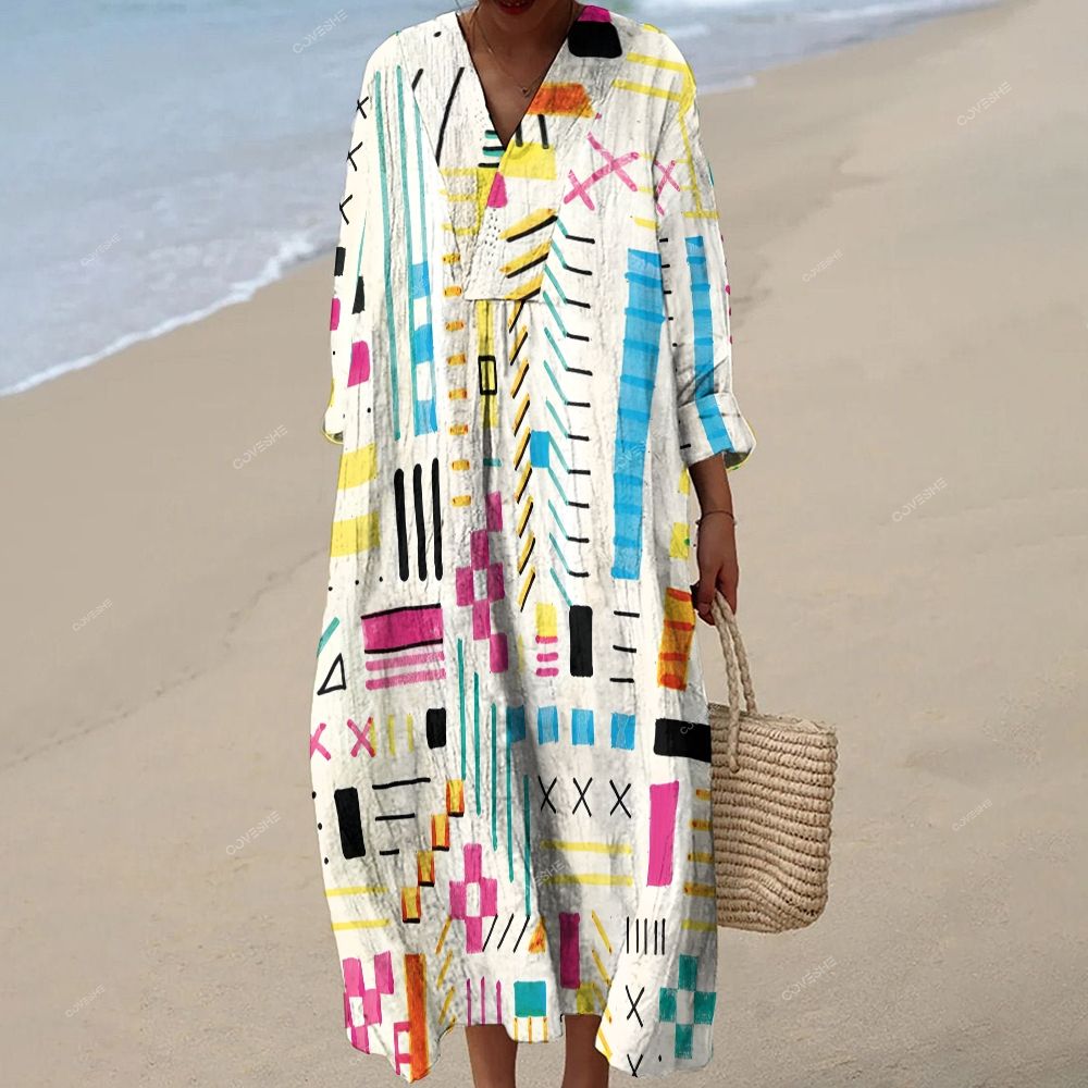 Women's Retro Geometric Colorblock Print Casual Shirt