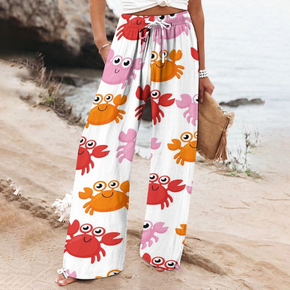 Women's Wide Leg Casual Cartoon Crab Printed Pants