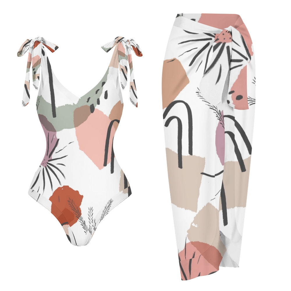 Women's Colorful Art Block Printed One Piece Swimsuits and Cover Ups