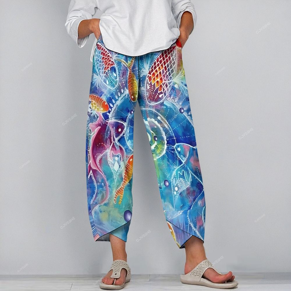 Women's Casual Artistic Cartoon Fish Printed Pants