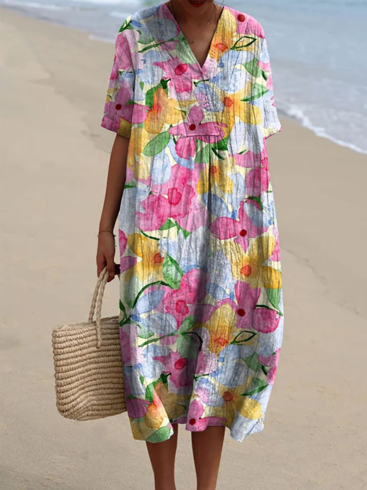 Women's Flower Watercolor Splash Fluid Art Print Flowy Dress