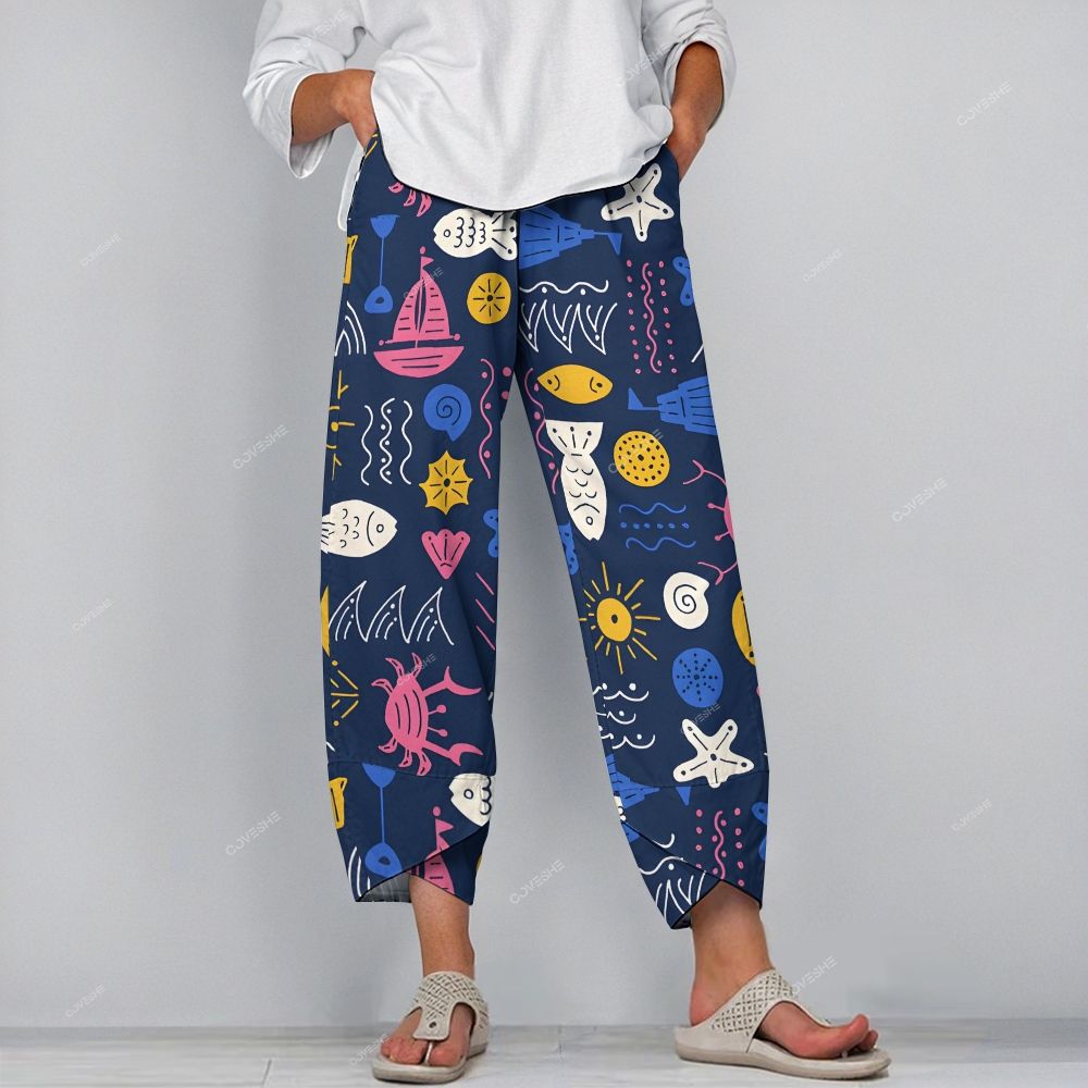 Women's Casual Colorful Cartoon Fish Crab Printed Pants