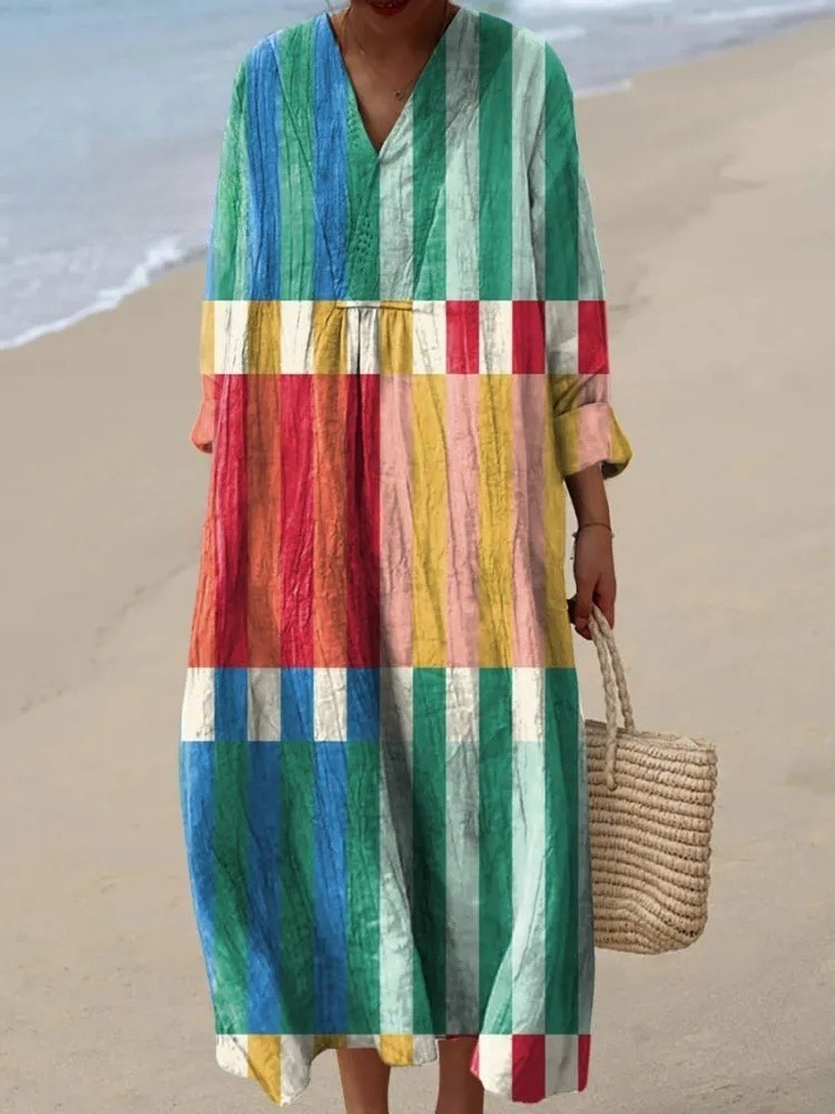 Women's Colorful Plaid Print Flowy Dress