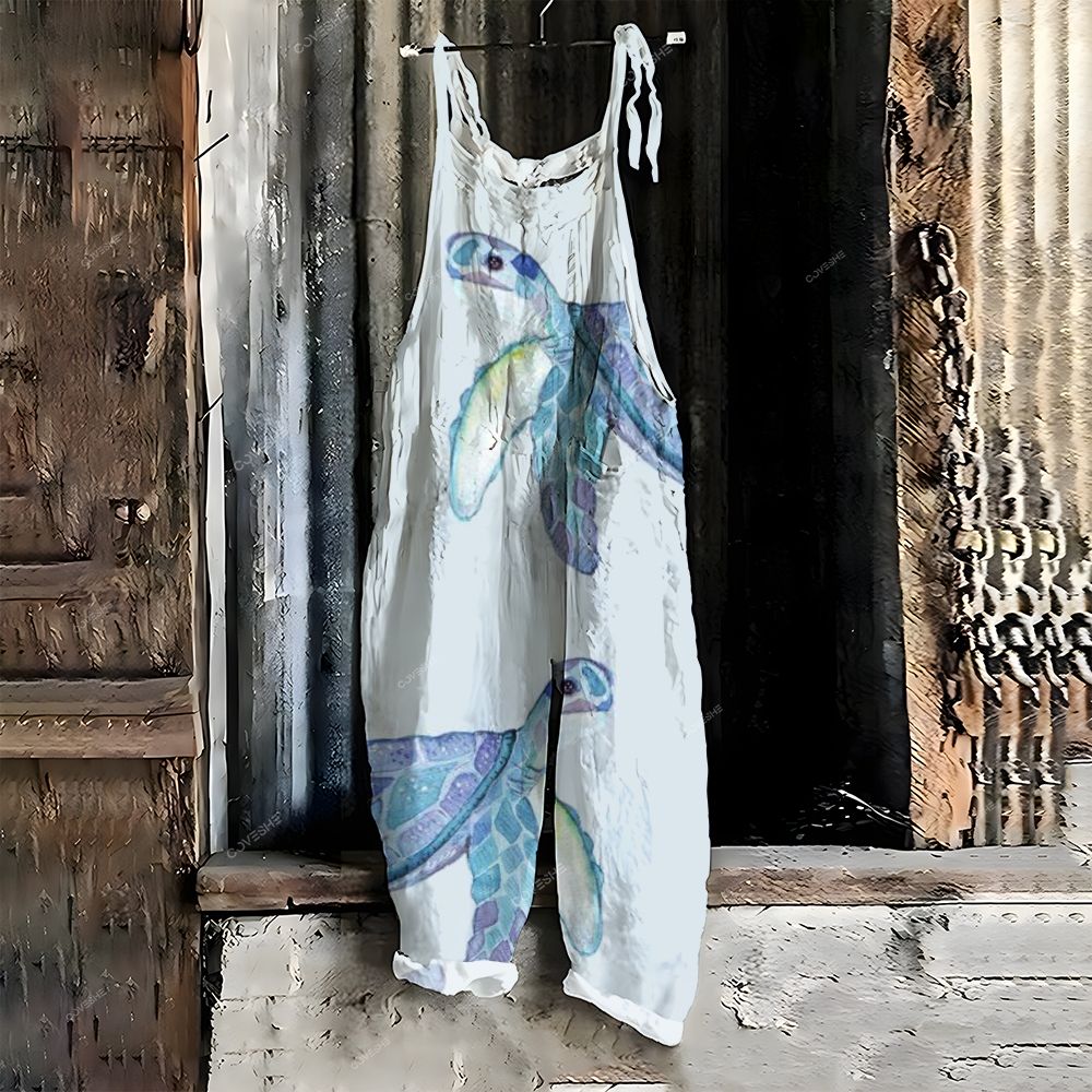 Women's Casual Cartoon Turtle Printed Jumpsuit