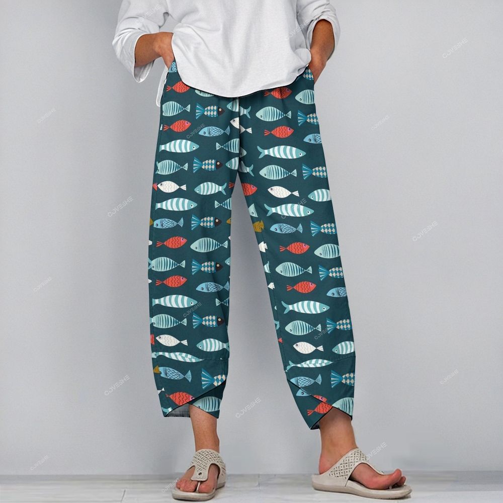 Women's Casual Cartoon Fish Printed Pants