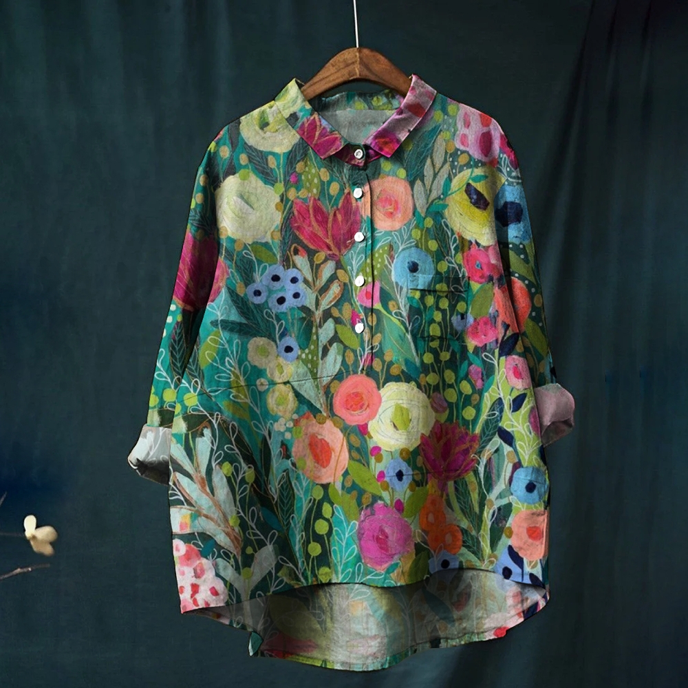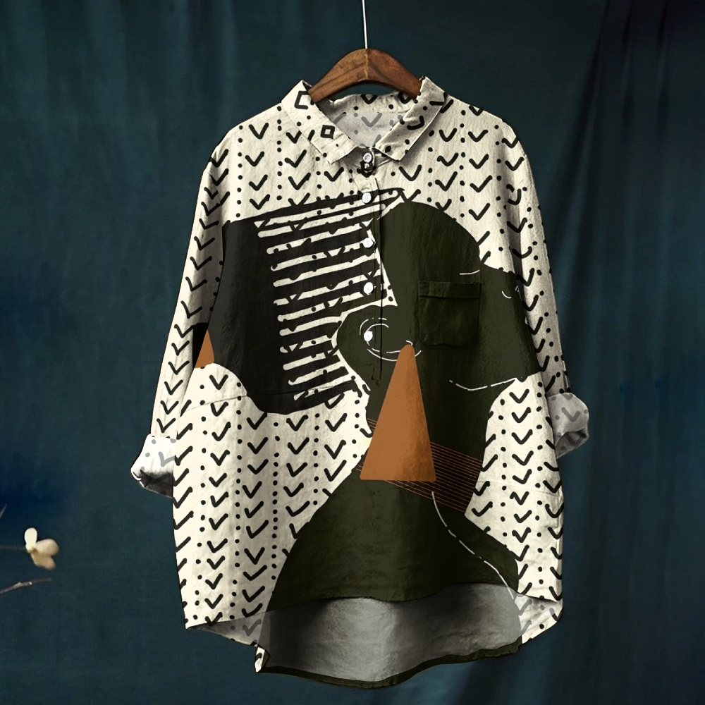 Women's Colorblock Art Printed Long Sleeve Casual Shirt
