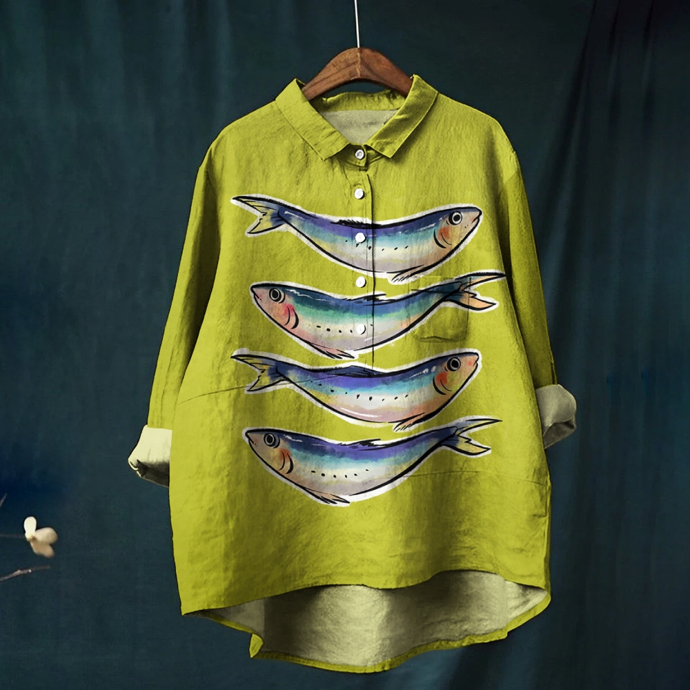 Women's Simple Fish Printed Casual Long Sleeve Shirt