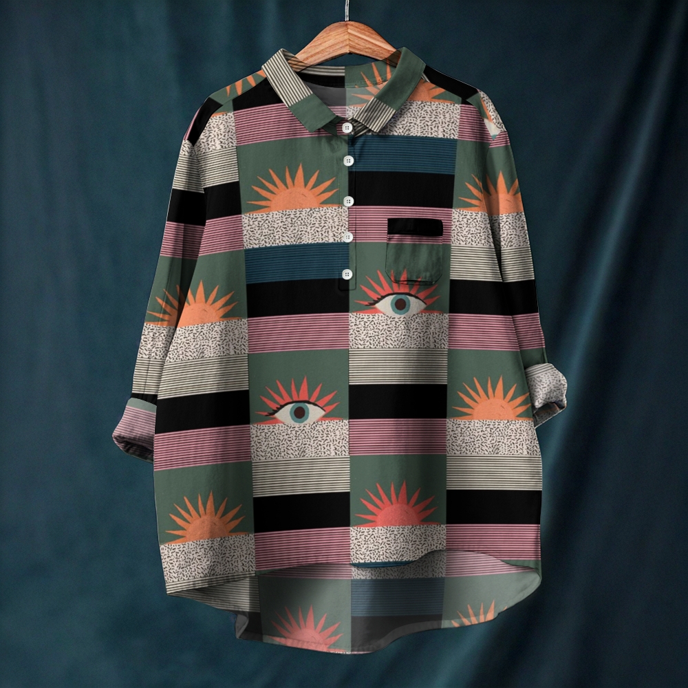 Women's Abstract Geometric Pattern Art Print Casual Shirt
