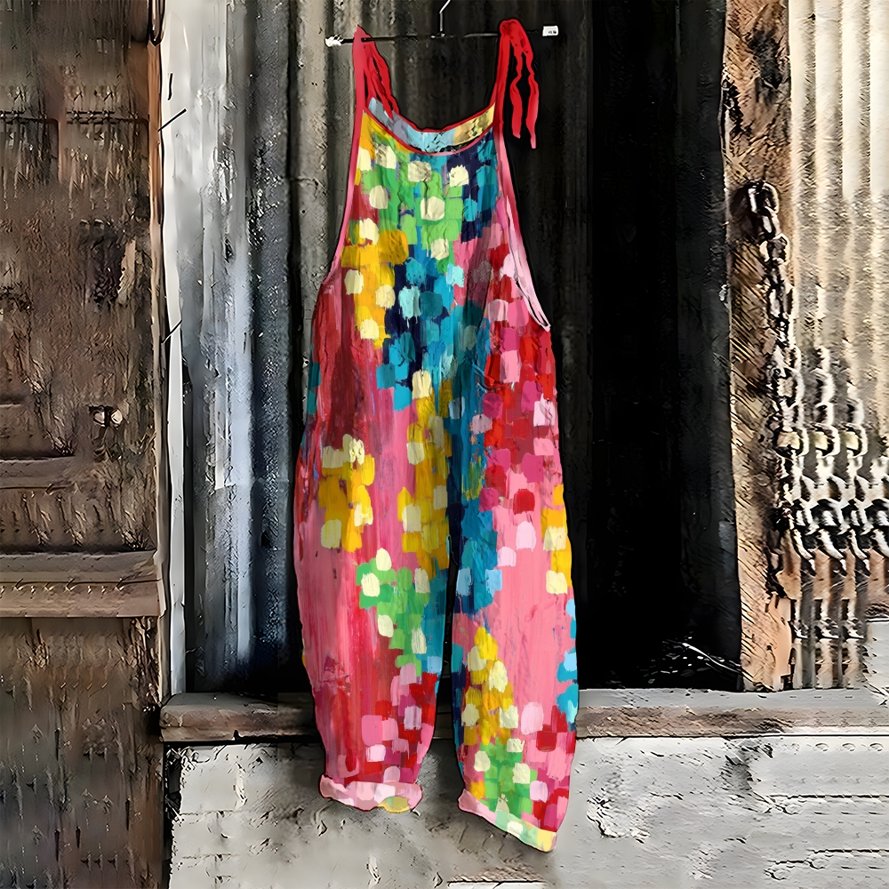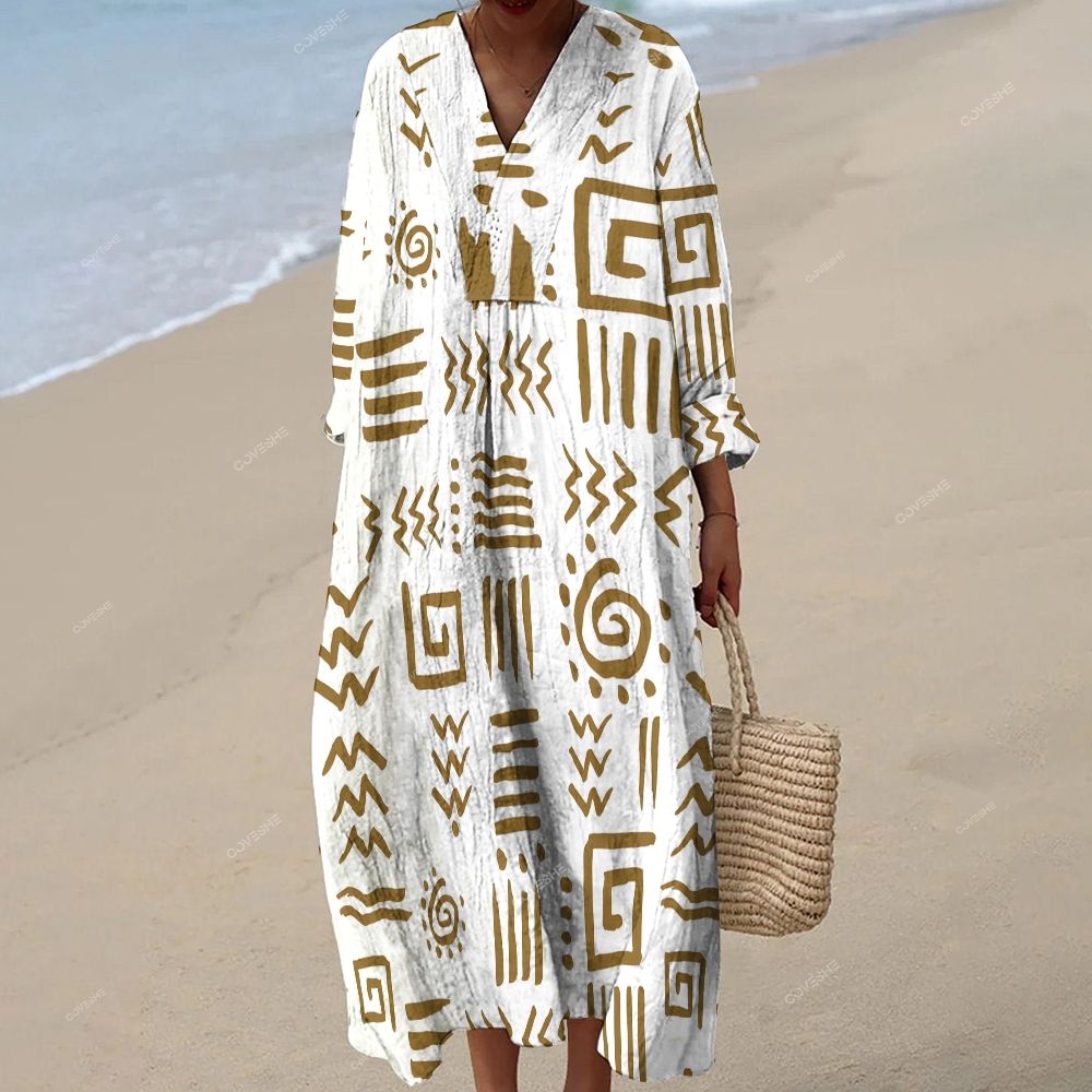 Women's Retro Simple Geometric Hand-drawn Pattern Watercolor Splash Fluid Art Print Flowy Dress