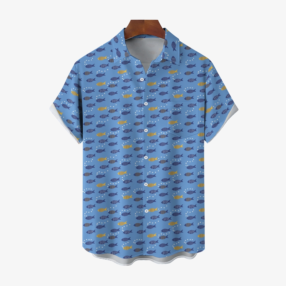 Men's Marine Life Print Hawaiian Casual Short Sleeve Shirt 2406001943