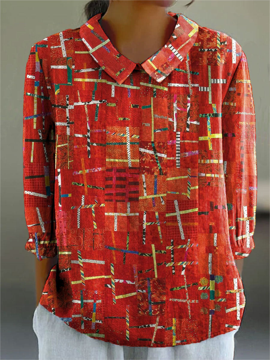 Women's Vintage Abstract Geometry Print Casual V-neck Shirt