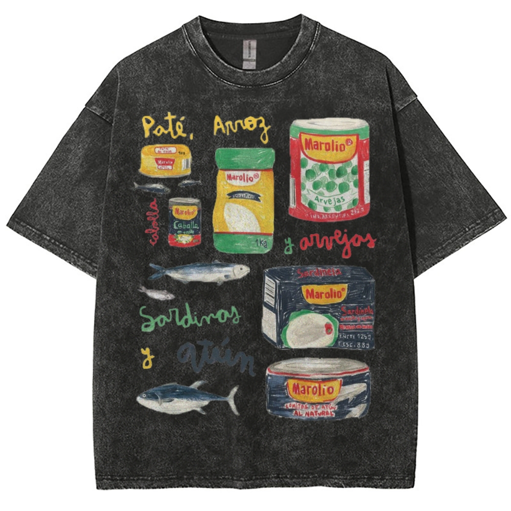 Unisex Sardines Can Prints Washed Tee