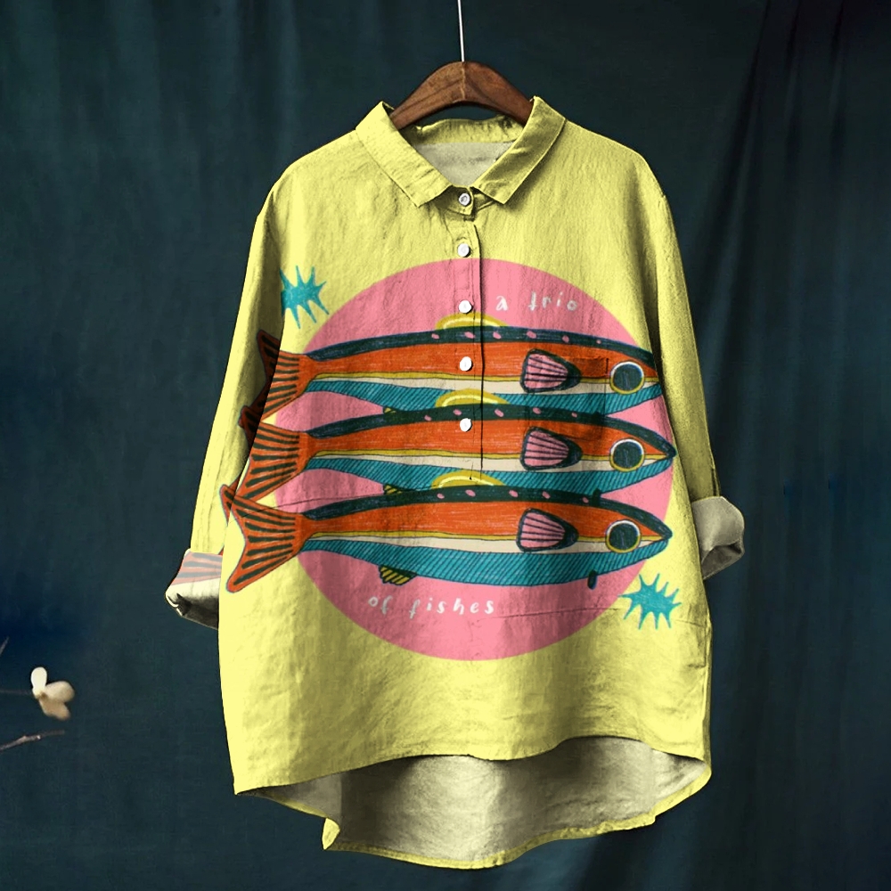 Women's Sardine Printed Casual Long Sleeve Shirt