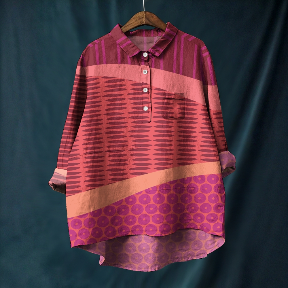 Women's Geometric Lines Printed Casual Long Sleeve Shirt