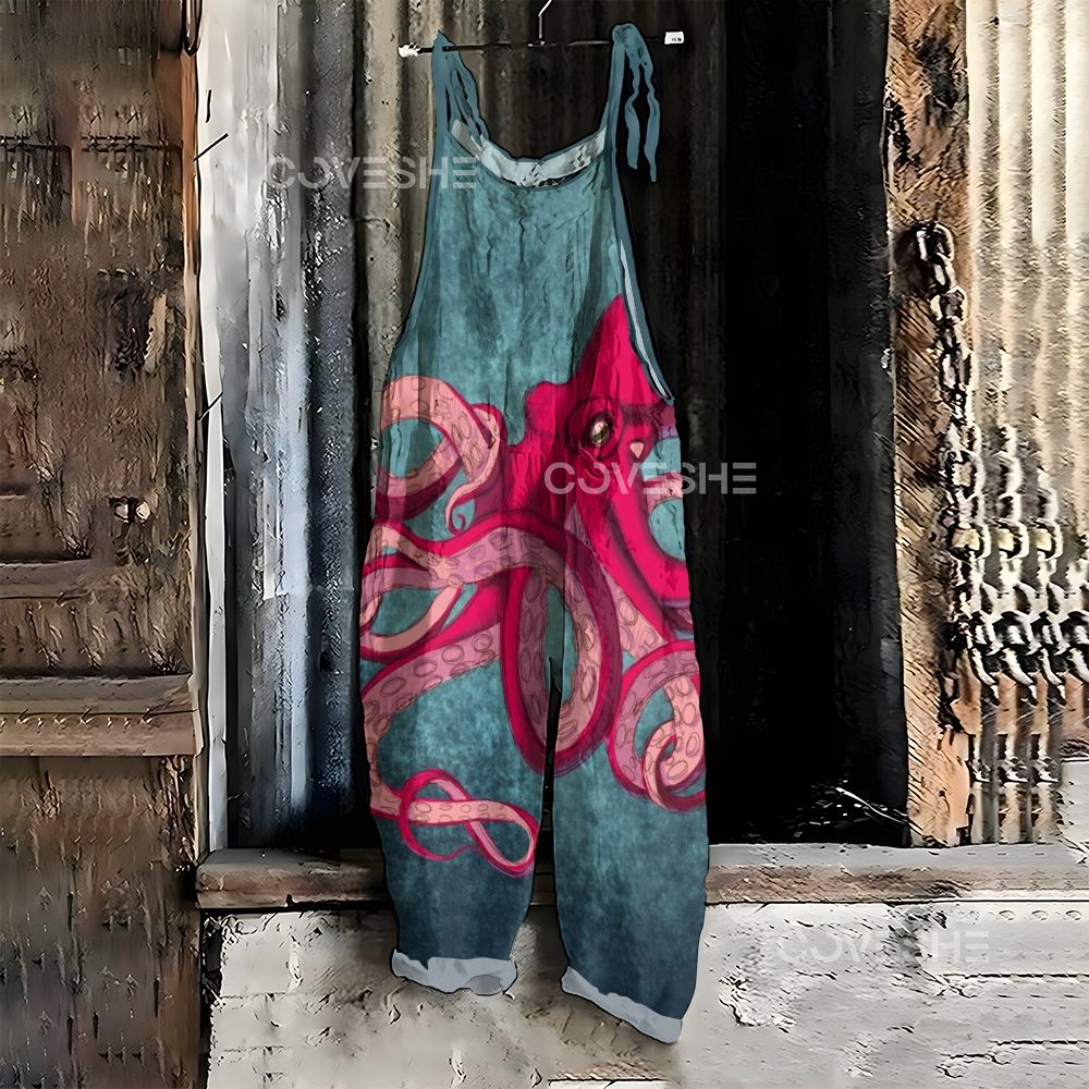 Women's Casual Rose Pink Octopus Printed Jumpsuit