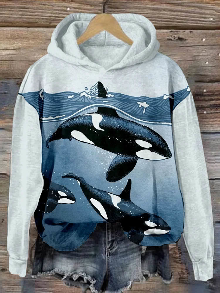Whales & Waves Art Graphic Casual Cozy Hoodie