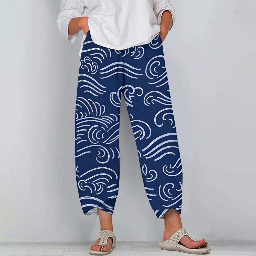 Women's Casual Japanese Waves Printed Pants