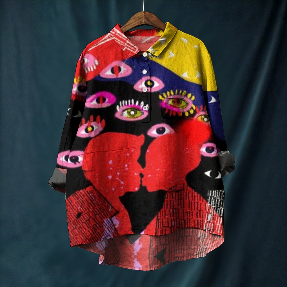 Women's Portrait Art Eyes Printed Casual Long Sleeve Shirt