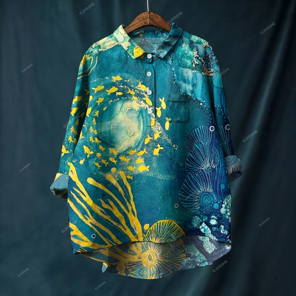 Women's Fish Coral Printed Casual Long Sleeve Shirt