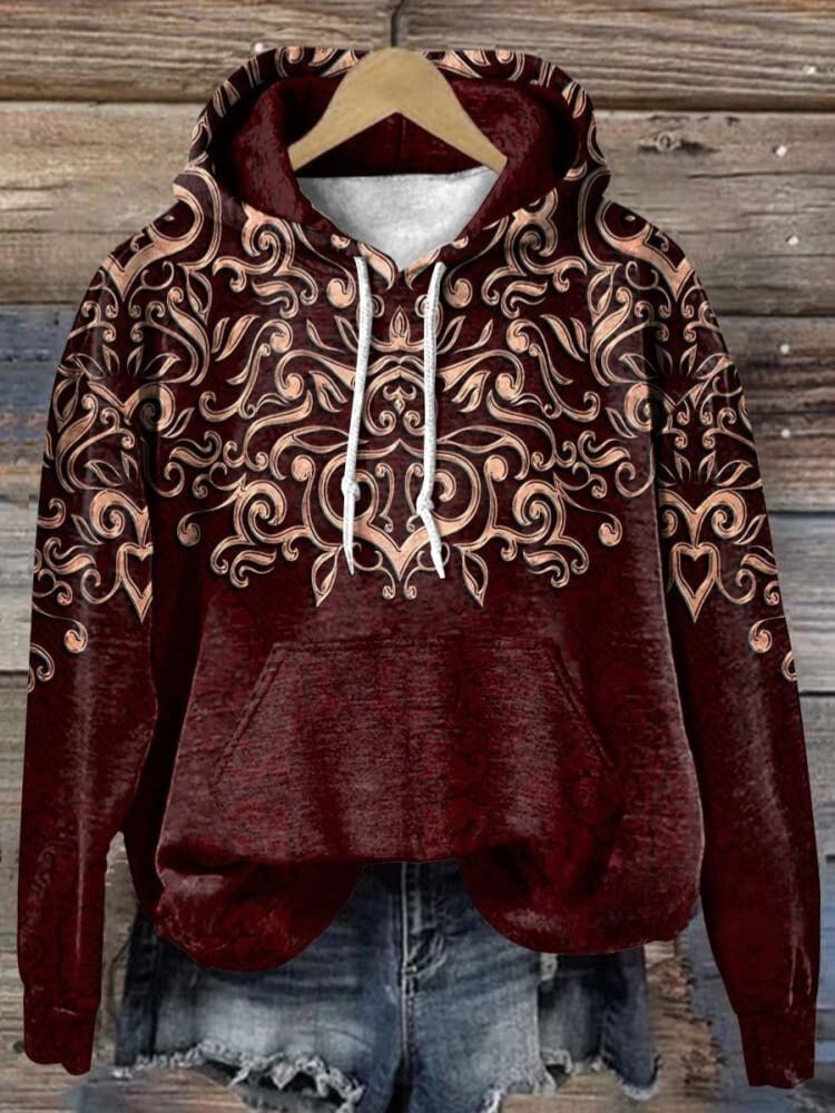 Retro Crimson Pattern Art Print Casual Hoodie Sweatshirt