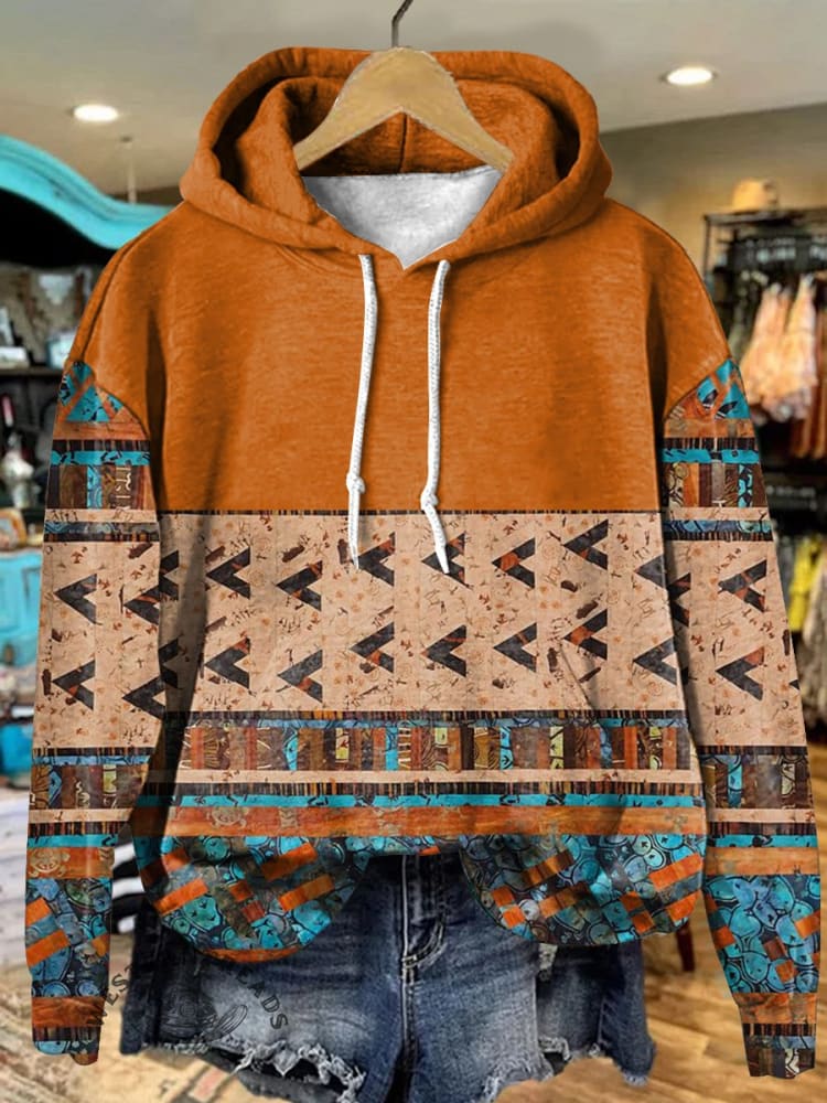 Retro Orange Stripes Geometric Art Print Casual Hoodie Sweatshirt