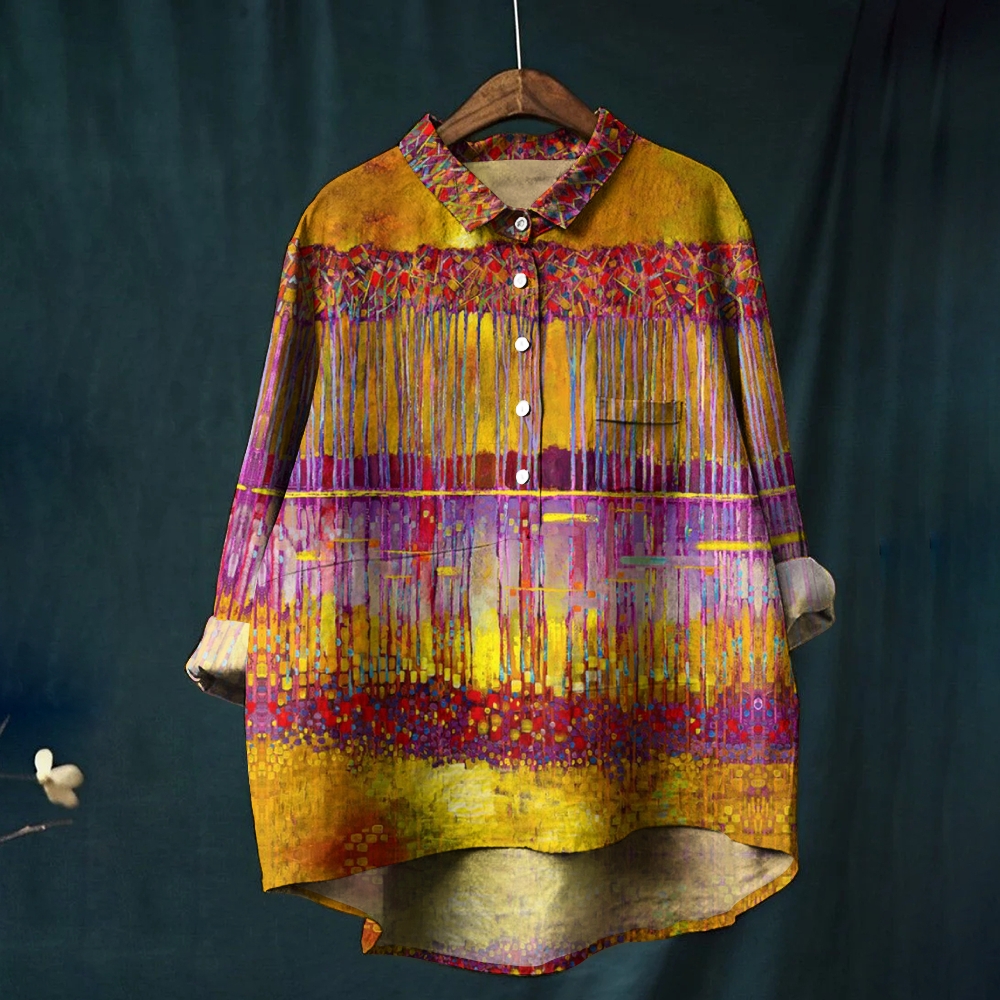 Women's Retro Art Print Casual Cotton Shirt