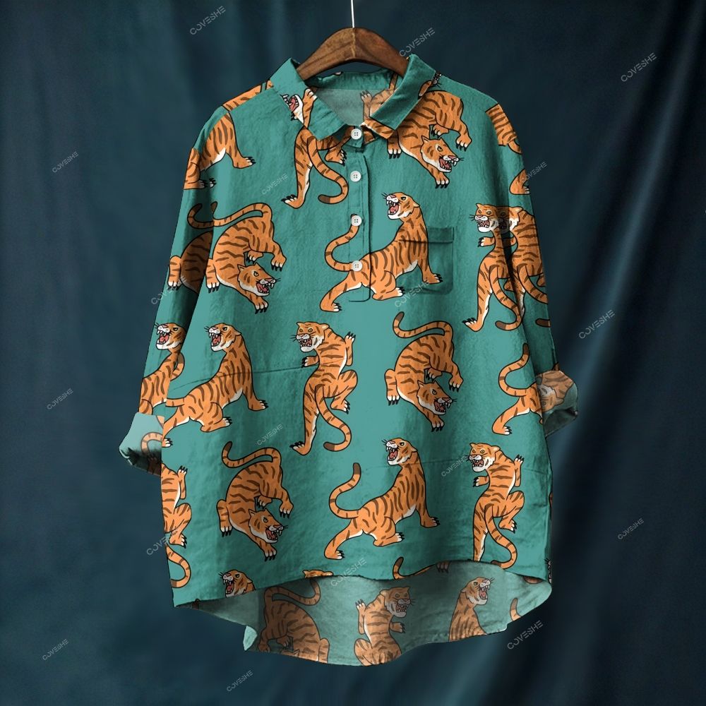 Women's Printed Vintage Tiger Casual Long Sleeve Shirt