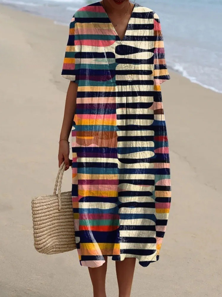 Women's Vintage Geometric Pattern Art Print Cotton Dress