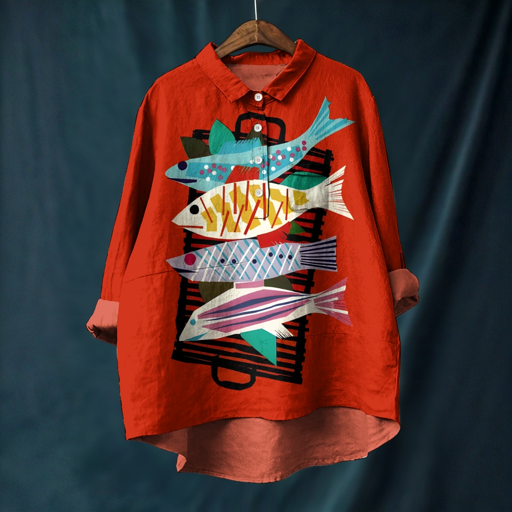 Women's Graffiti Fish Printed Casual Long Sleeve Shirt