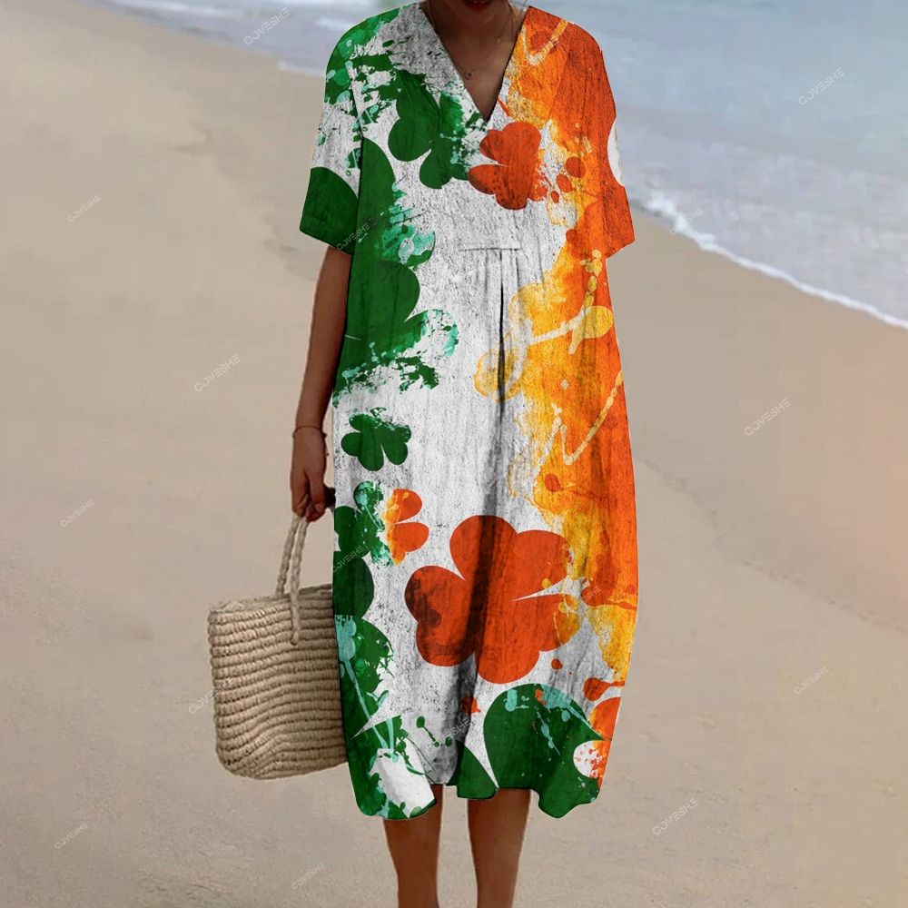 Women's Gradient Four Leaf Clover Printed Flowy Dress