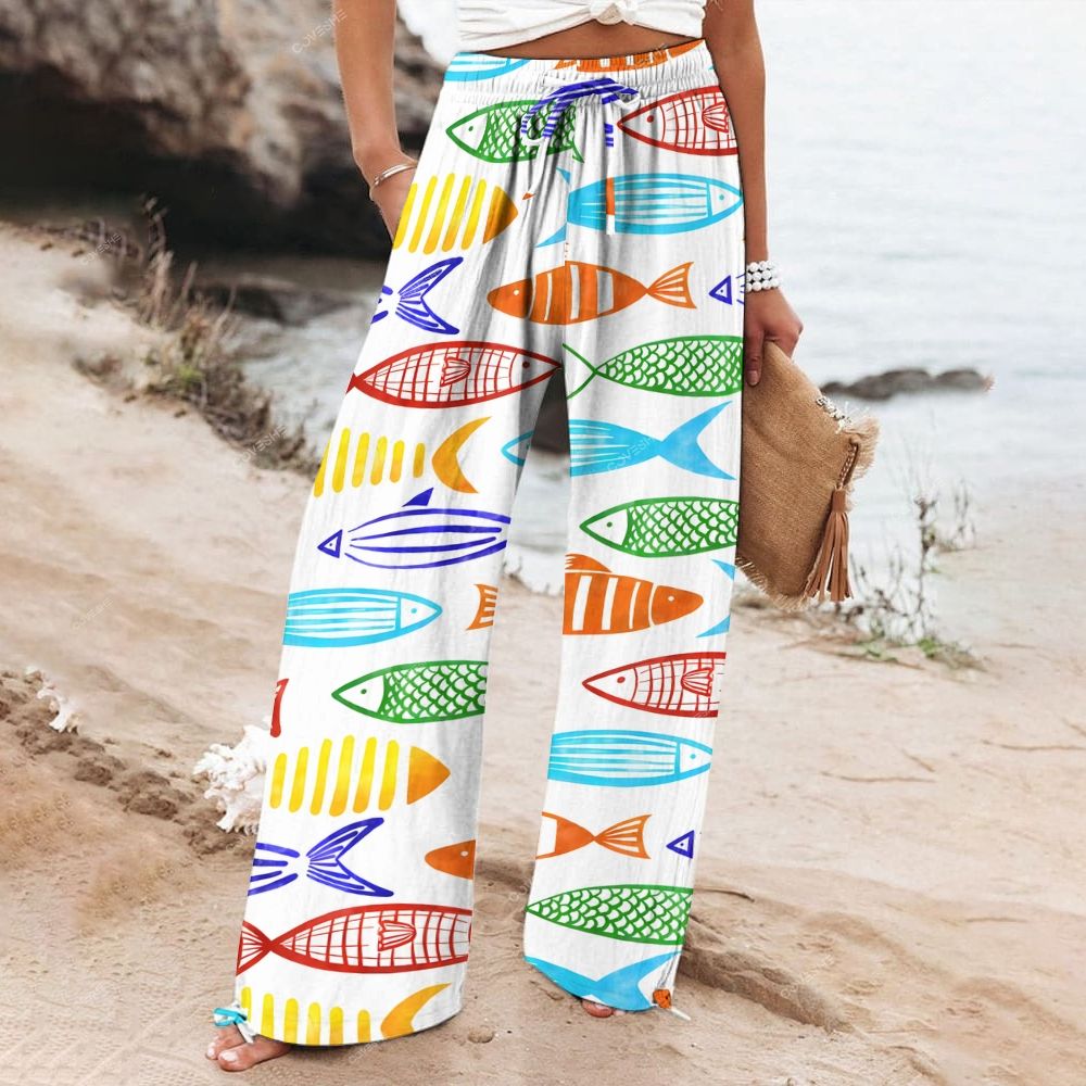 Women's Wide Leg Casual Colorful Fish Printed Pants