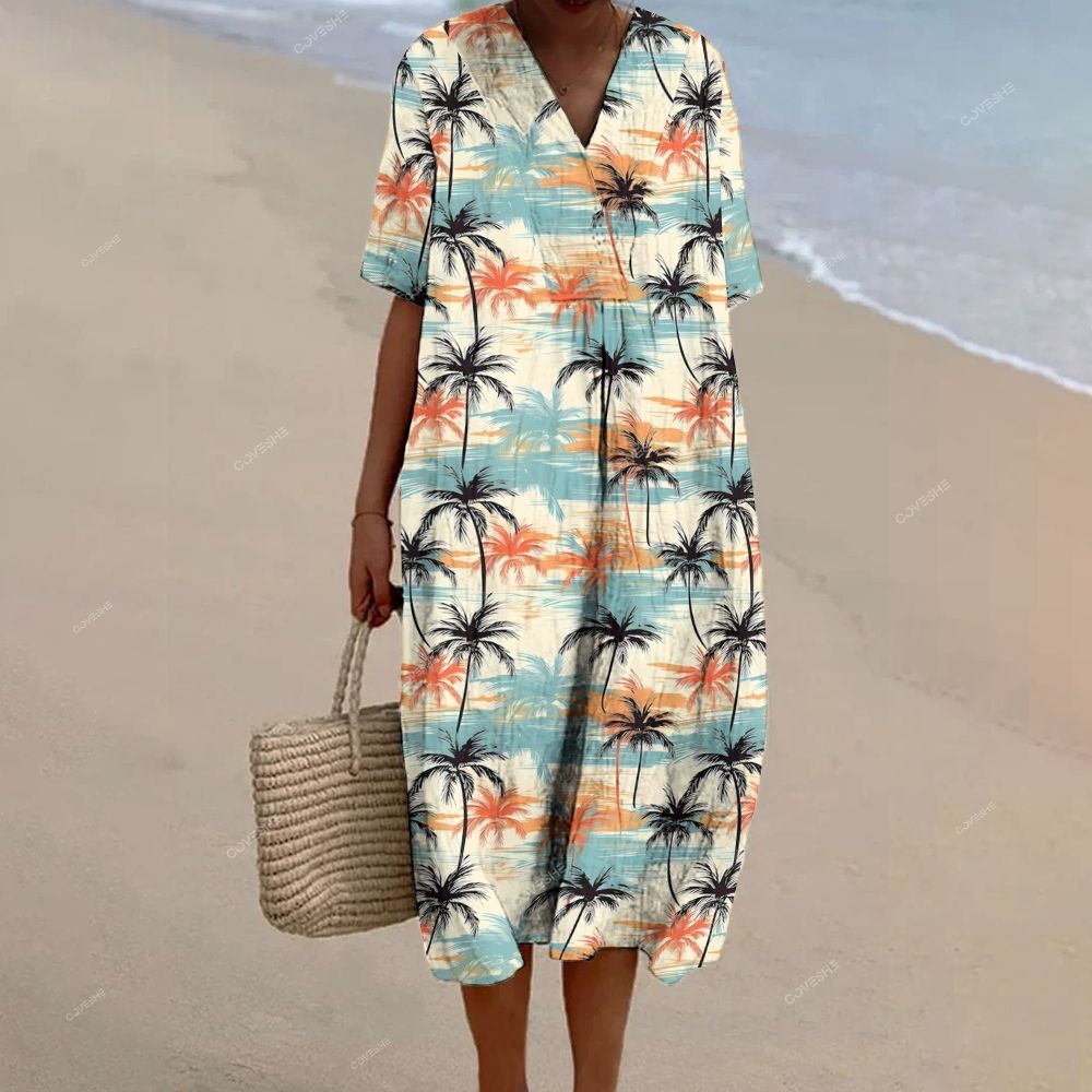 Women's Coconut Tree Printed Flowy Dress