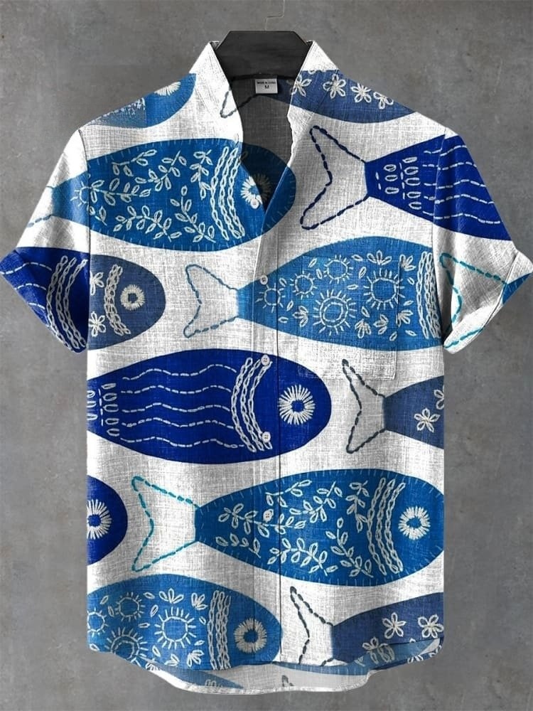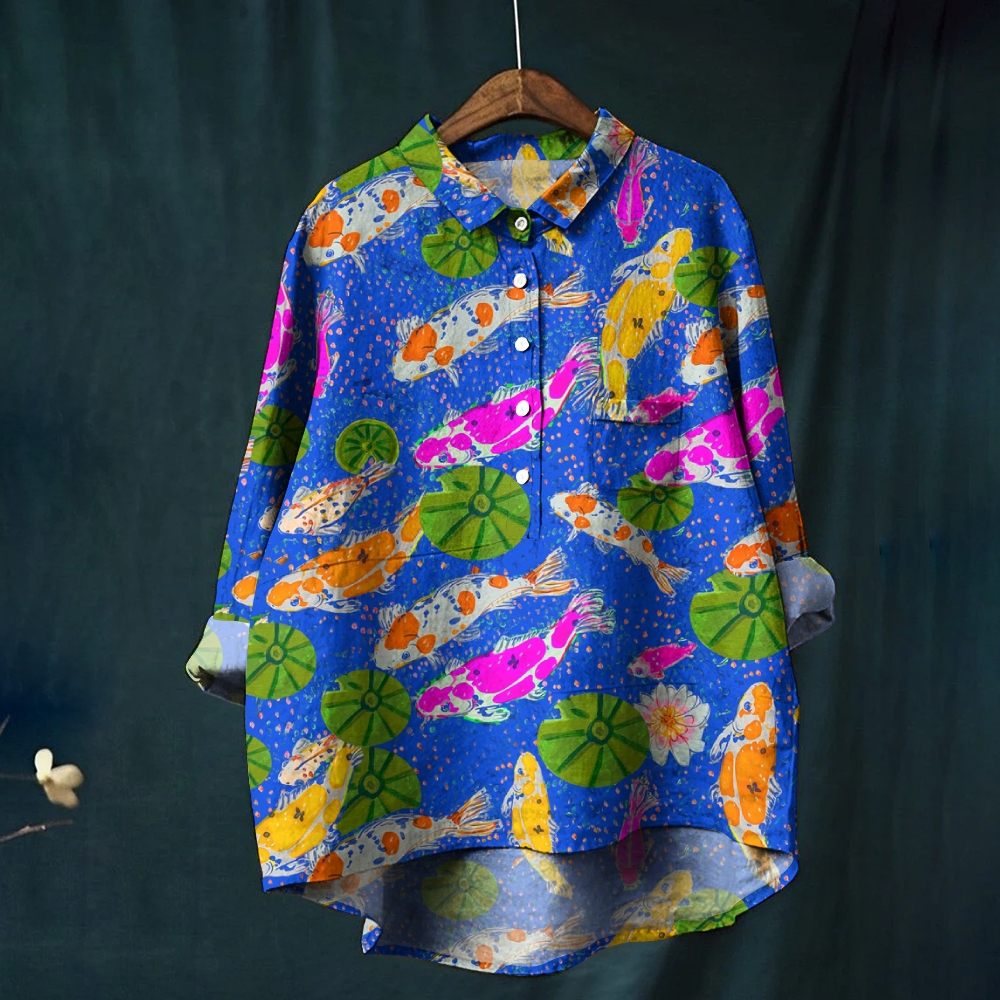 Women's Artistic Portrait Fish Printed Casual Long Sleeve Shirt