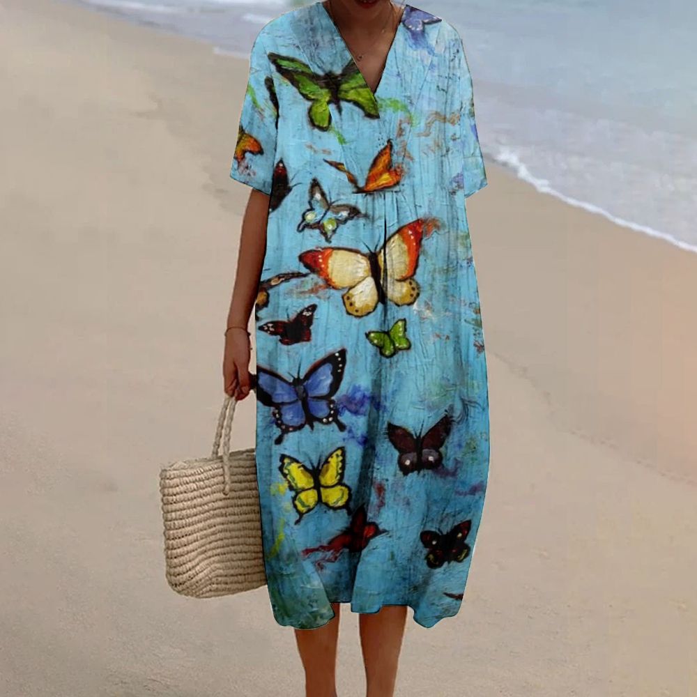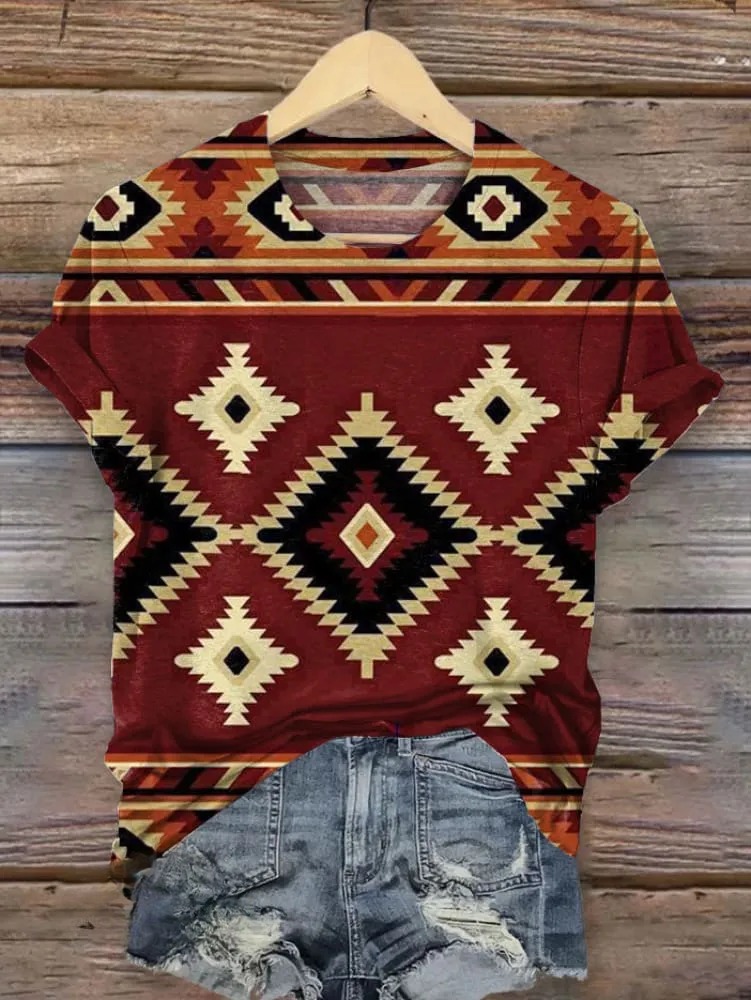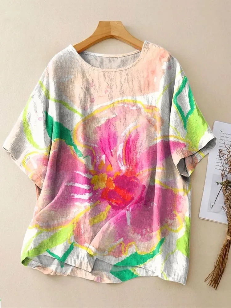 Women's Vintage Colorful Flower Art Print Casual V-neck Shirt