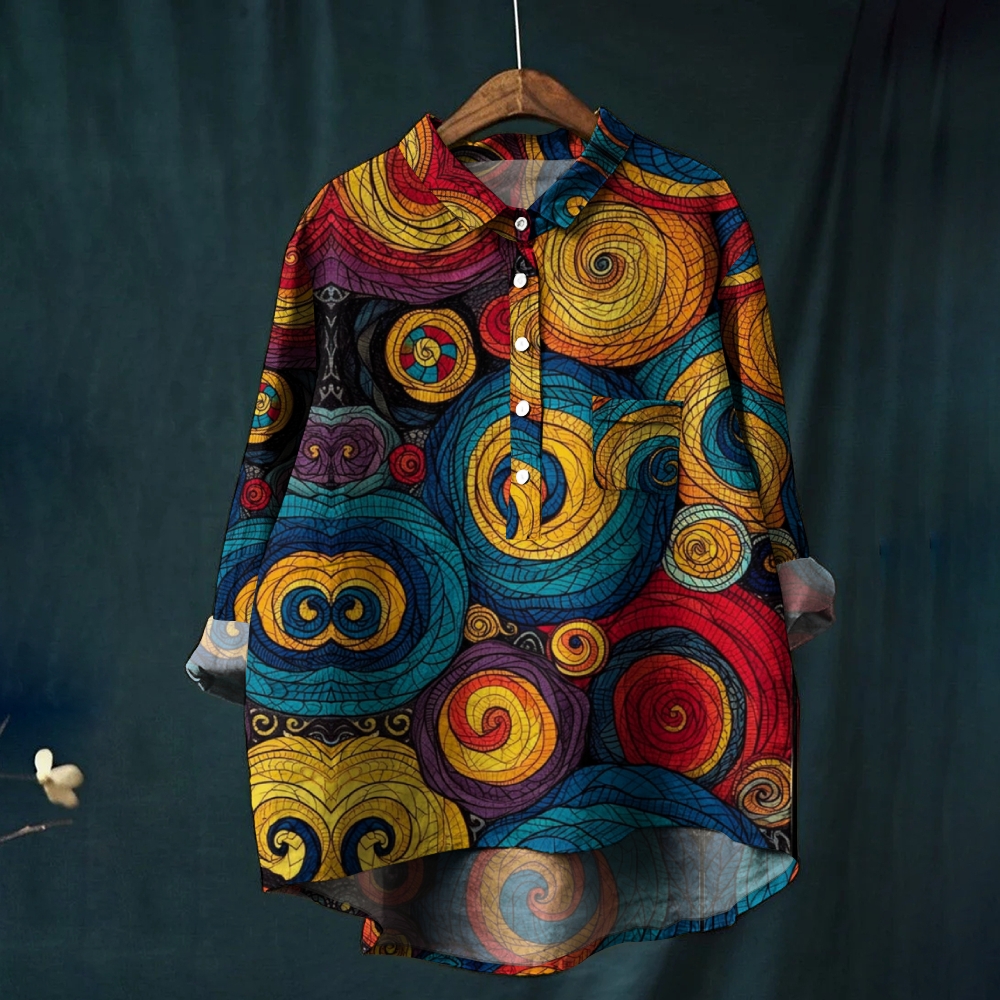 Women's Artistic Portrait Printed Long Sleeve Casual Shirt