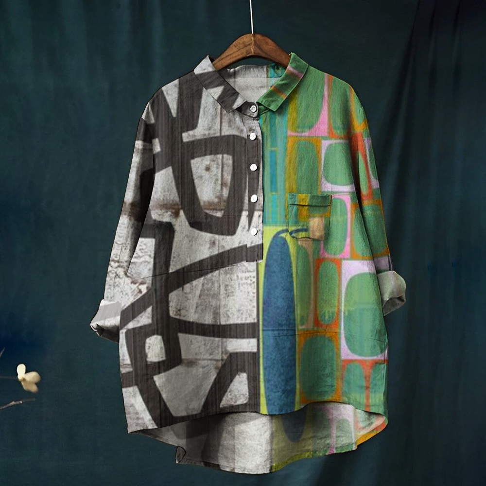 Women's Abstract Geometric Splicing Printed Casual Shirt