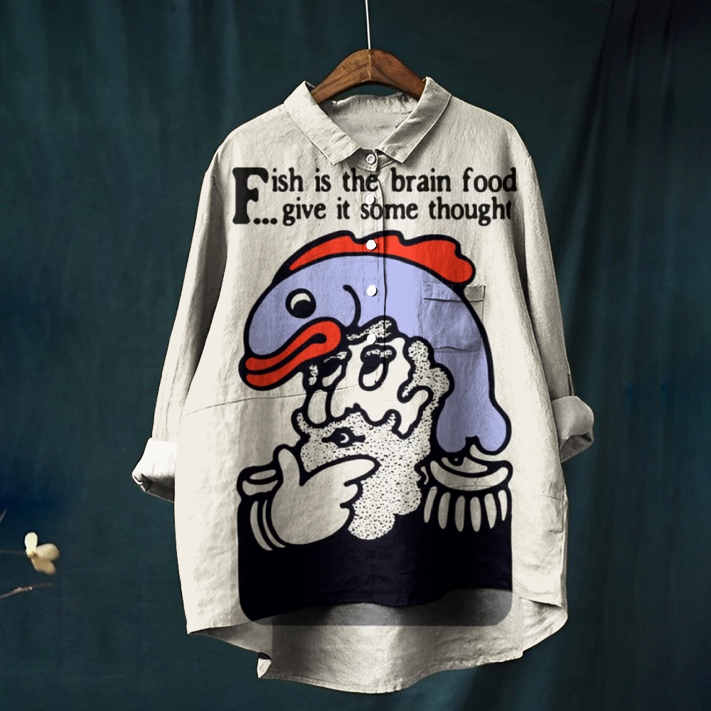 Women's Letter Fish Art Print Casual Shirt