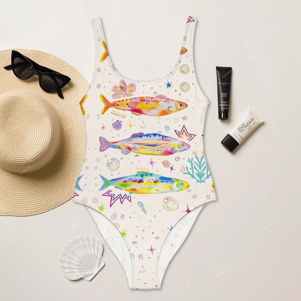 Colorful Art Fish Printed One Piece Swimsuit