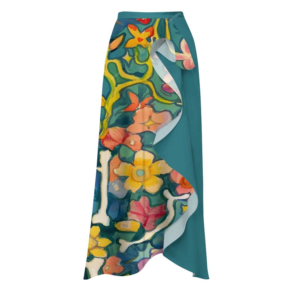 Women's Retro Hand Drawn Beautiful Colorful Love Art Print Flowy Dress