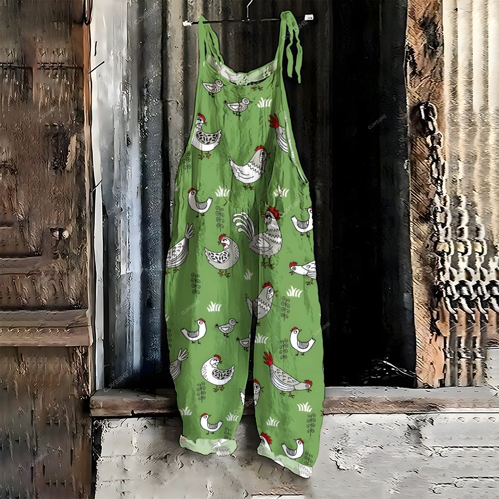 Women's Casual Artistic Cartoon Chicken Printed Jumpsuit