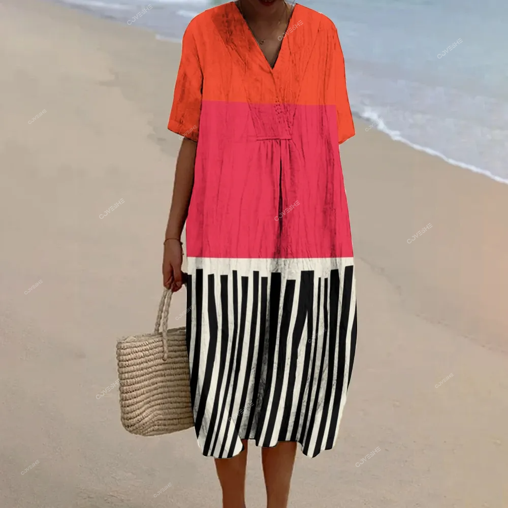 Women's Color Block Stripes Printed Flowy Dress