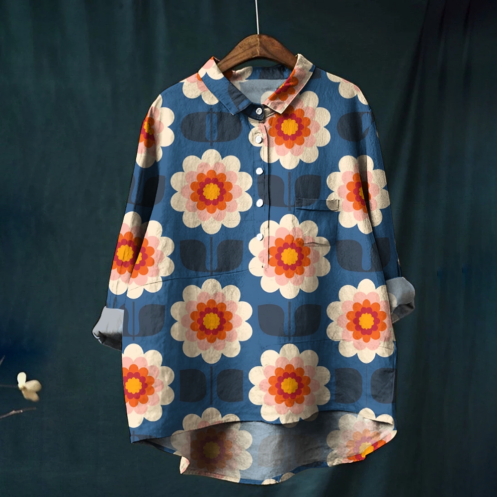 Women's Retro Ethnic Pattern Printed Casual Long Sleeve Shirt