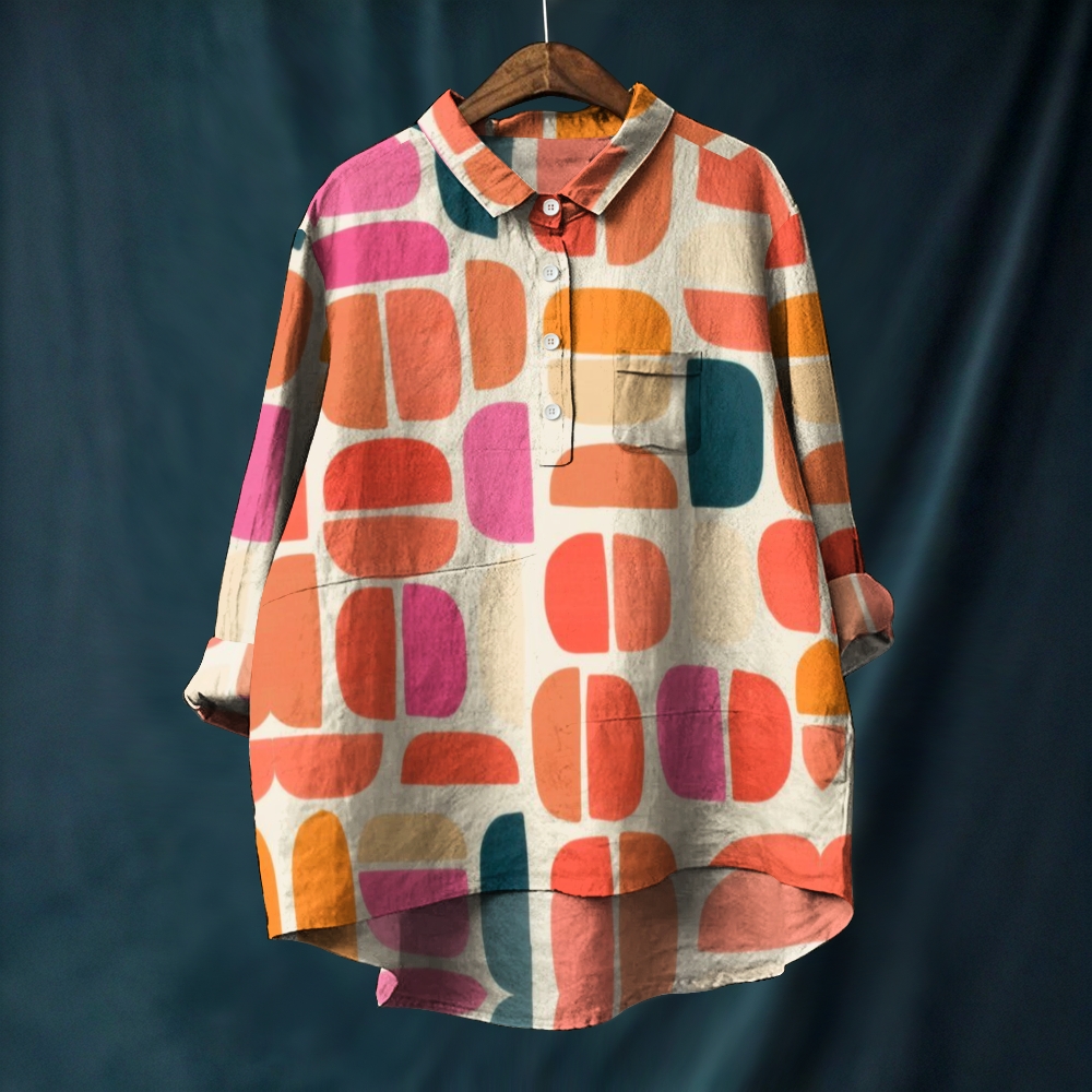 Women's Abstract Colorblock Art Printed Casual Shirt