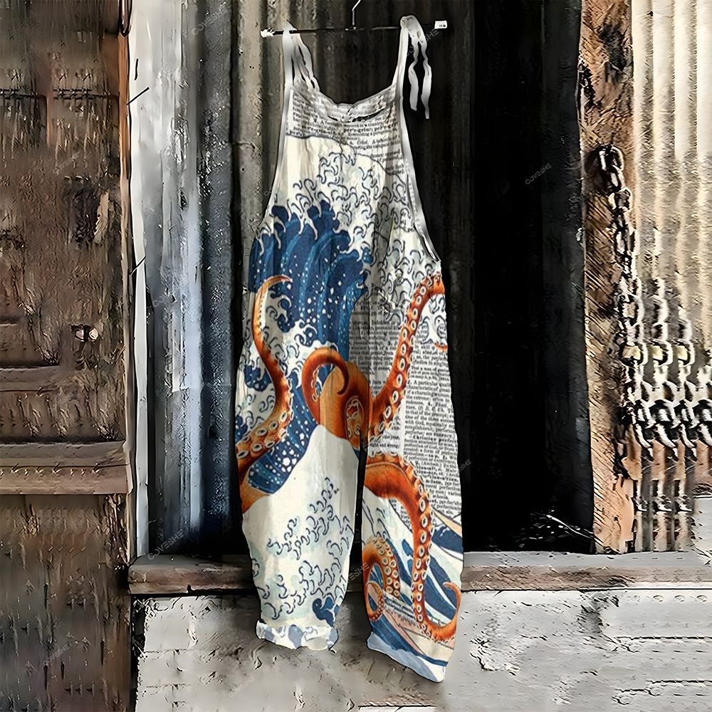 Women's Casual Ocean Wave Octopus Printed Jumpsuit