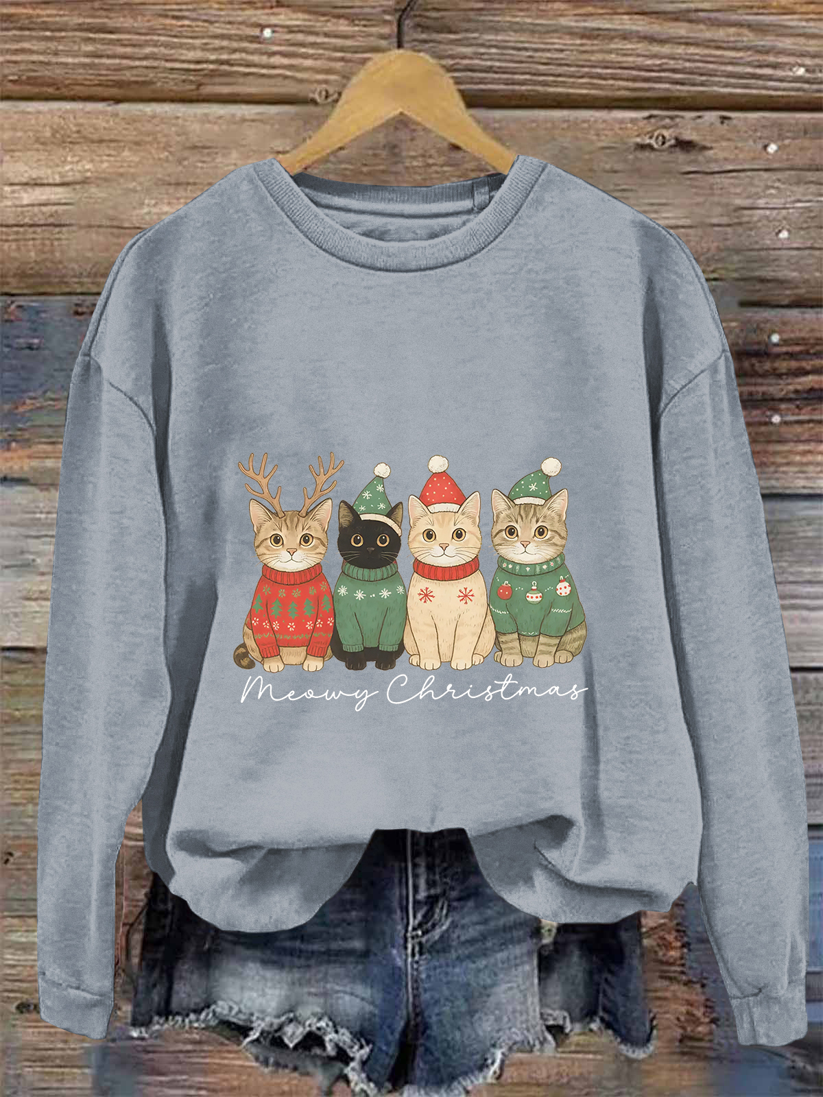 Merry Christmas Cats Printed Fleece-lined Unisex Sweatshirt